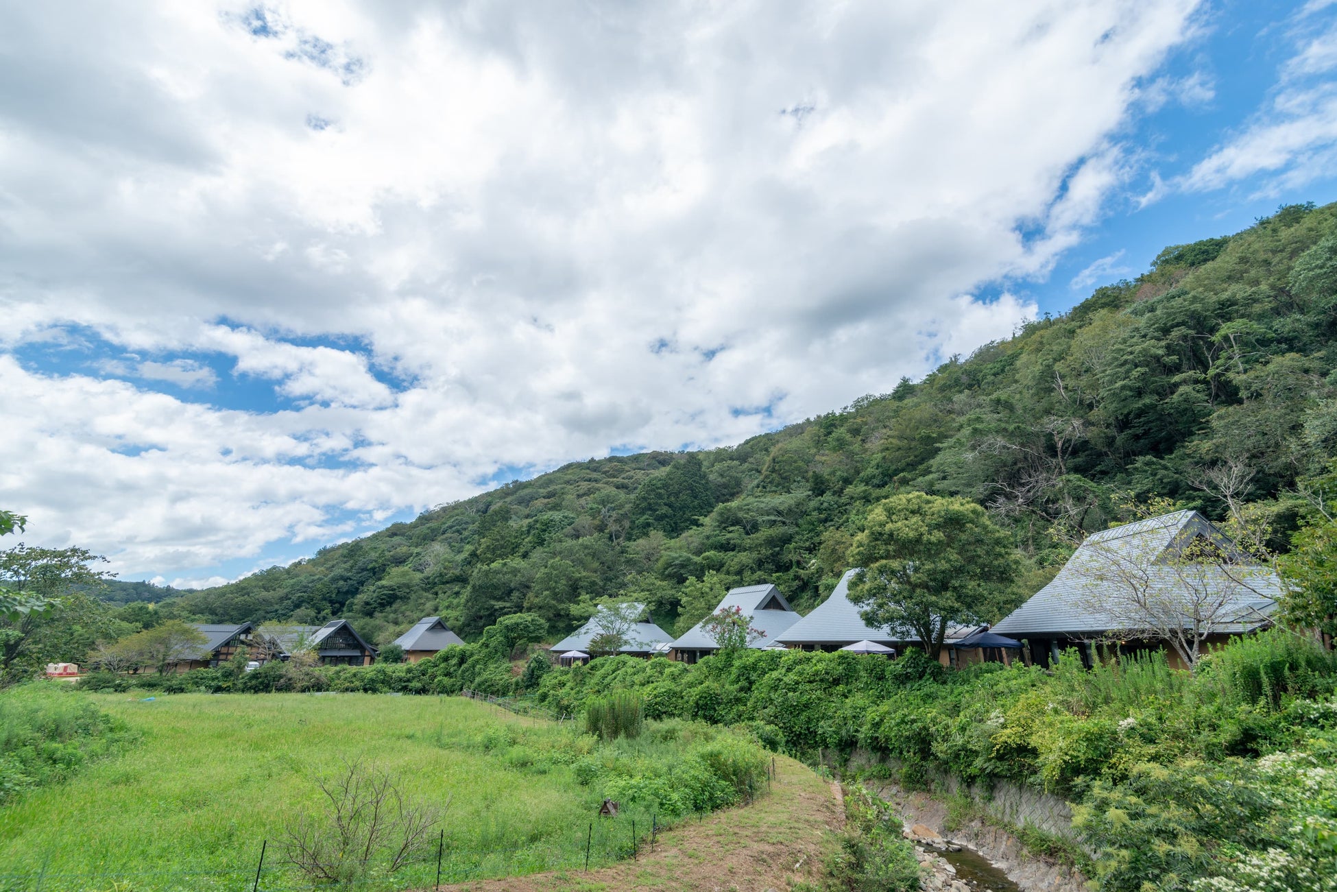 キャンプ場内には、快適な宿泊キャビン(古民家)、キャンプサイト、共用エリア、シャワー&トイレなど、充実した施設が完備されています。最新の設備と快適な環境により、お客様は安心してキャンプを楽しむことができます。また、古民家棟には囲炉裏やかまど、五右衛門風呂を設置しており、まるで明治時代にタイムスリップしたかのような休日をお過ごしいただくことが出来きます。お好みに合わせて様々なプラン※2よりお選びください。