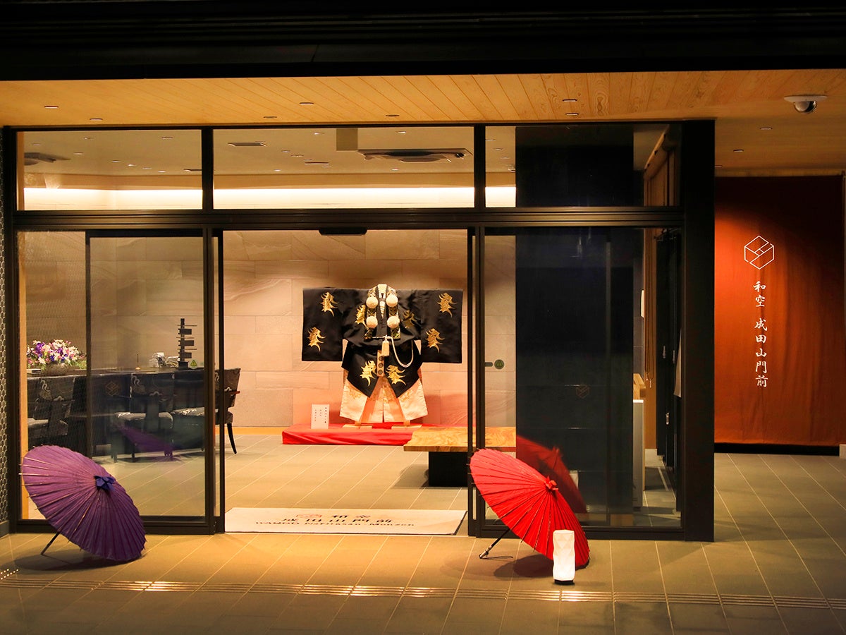 旅館「和空 成田山門前」は、成田山新勝寺表参道沿いに位置し、『歌舞伎と成田山の歴史が交差する門前宿』というコンセプトで、2022年10月に開業しました。館内には、歌舞伎と成田山の歴史を体感していただける仕掛けを多数ちりばめております。