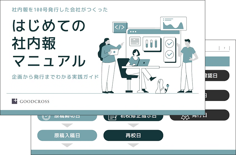 そんな悩みを抱える企業に向けて、この度創業25周年を迎え、社内報100号超を達成した印刷会社である株式会社グッドクロス(本社:東京都品川区 代表取締役:原田大輔)は令和8年1月15日(木)より自社ウェブサイトにて、実践してきた社内報内製ノウハウ「はじめての社内報マニュアル」を無料公開いたします。