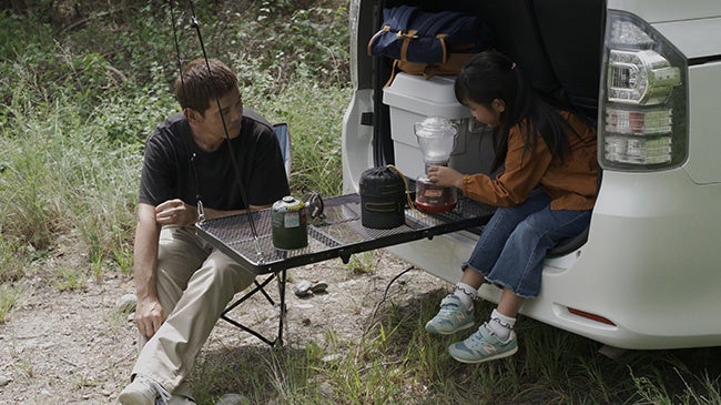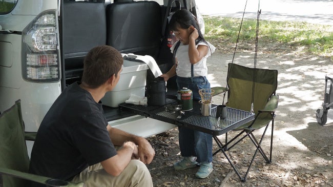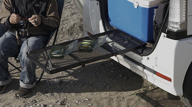 トランクに設置する脚のない新しい感覚のテーブル。簡単設置でお手軽にアウトドアで新しい時間を楽しめる。