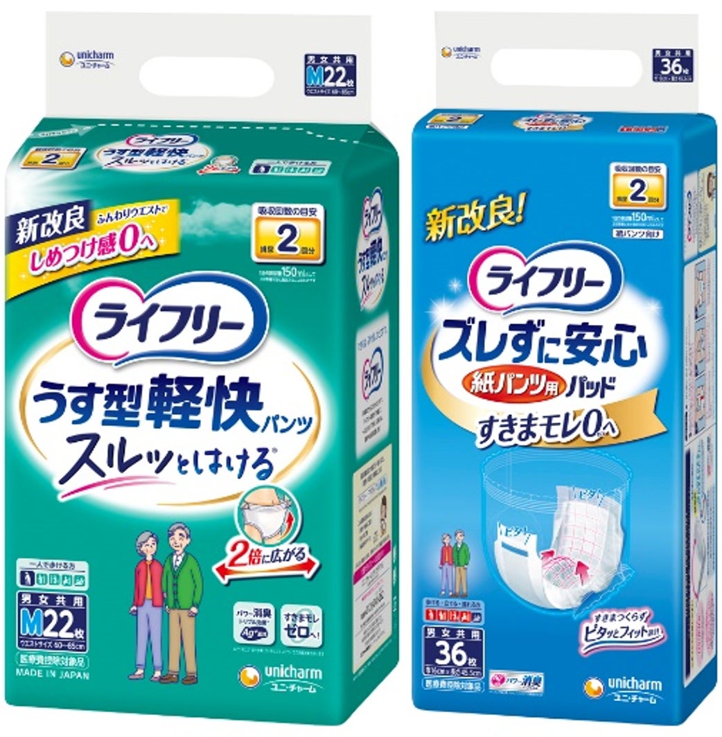 ※『ライフリー うす型軽快パンツ』4枚使用時と、同商品1枚と『ライフリー ズレずに安心 紙パンツ用尿とりパッド』4枚の組み合わせ使用時を比較した場合