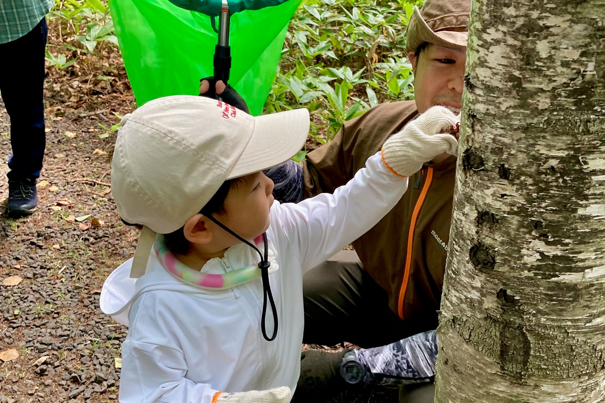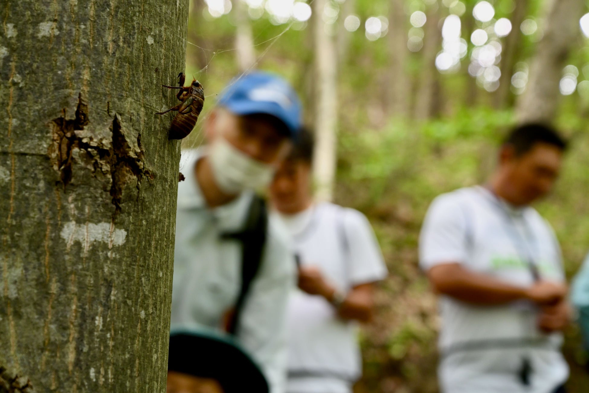 夏休み期間の開催ということもあり、参加した小学生からは昆虫を見つけるたびに歓声が上がりました。昆虫の棲む環境を間近に感じてもらい、森の大切さにも気づいてもらえました。また、動物の死骸や糞を食べる昆虫がいることで森の中がきれいに保たれていることや、外来種によって環境が変わってしまうこともツアーガイドから解説を受け、環境の保全についても学んでもらうことができました。