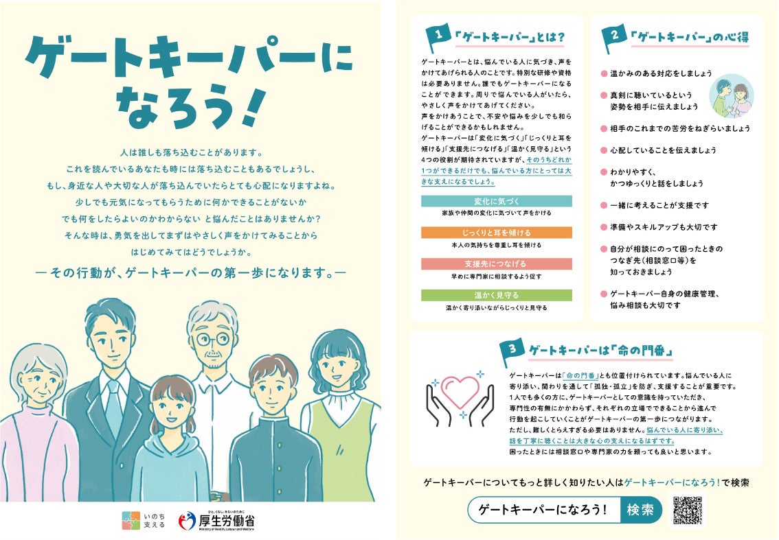 また、インターネットやSNSに馴染みのない方へも、印刷し直接配布ができるよう相談窓口のご案内リーフレットに加え、ゲートキーパーの啓発に向けたリーフレットを作成するなど、幅広い層に対する積極的な広報活動を実施しています。