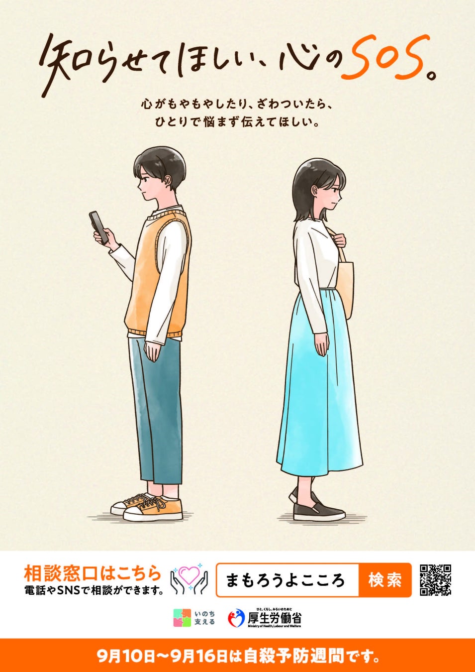「知らせてほしい、心のSOS。」厚⽣労働省
