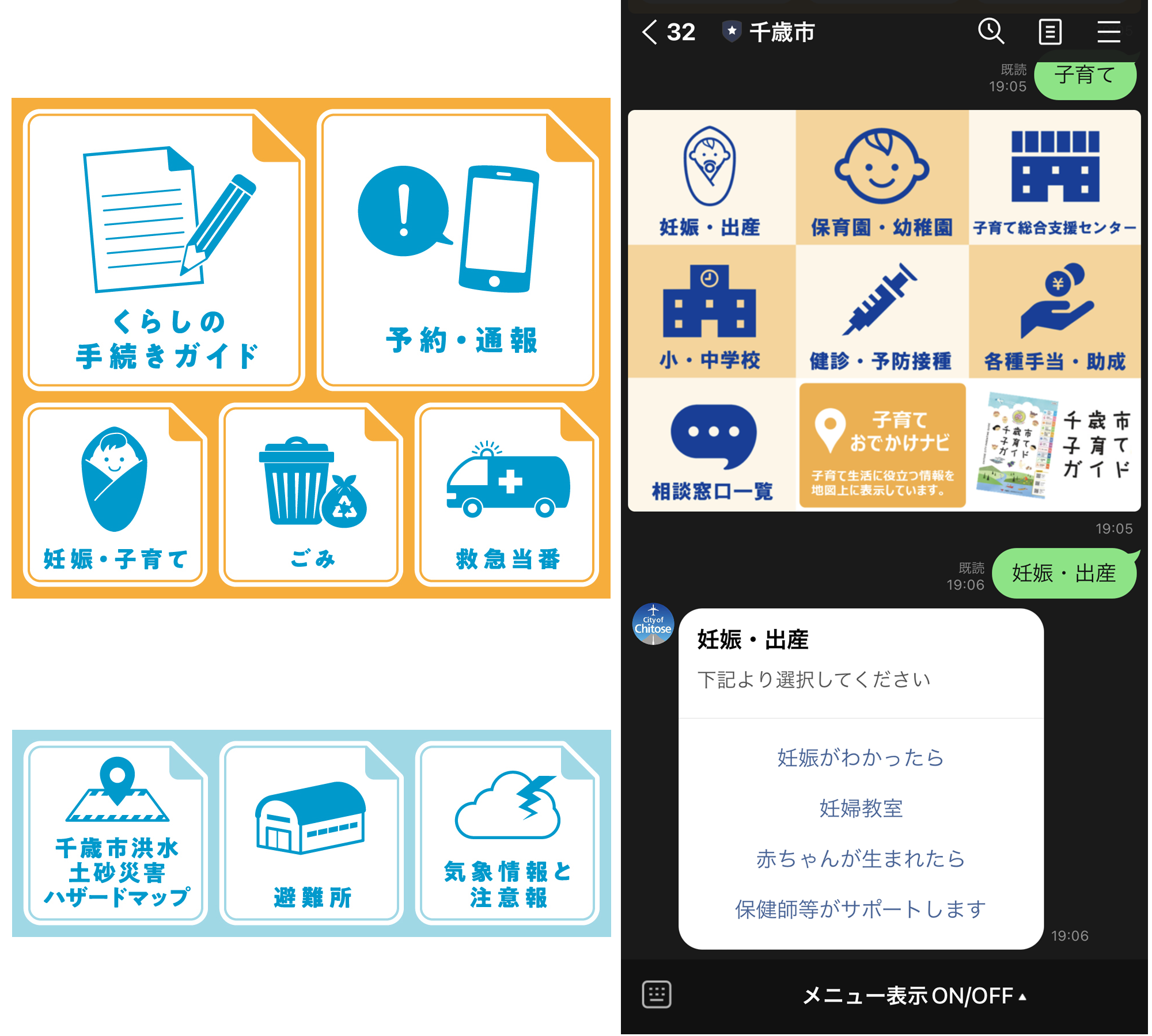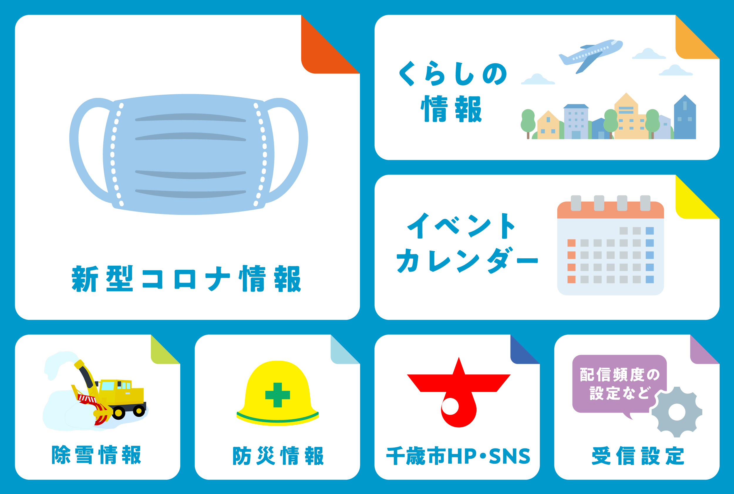 北海道千歳市ではLINE公式アカウントのコンテンツをリニューアルし、「防災」や「除雪」「子育て」といった市民生活においてニーズの高い情報を、チャットボットを通じて提供するサービスを開始しています。
