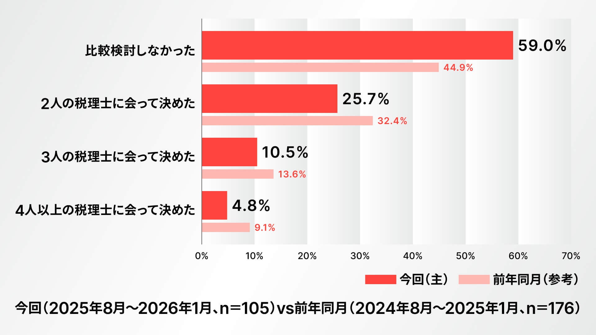 ・税理士は「比較せずに即決」が59.0%。前年同月の44.9%から14.1ポイント大幅上昇
