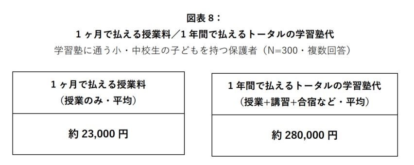 保護者が学習塾に払える授業料の平均は約2.3万円/月