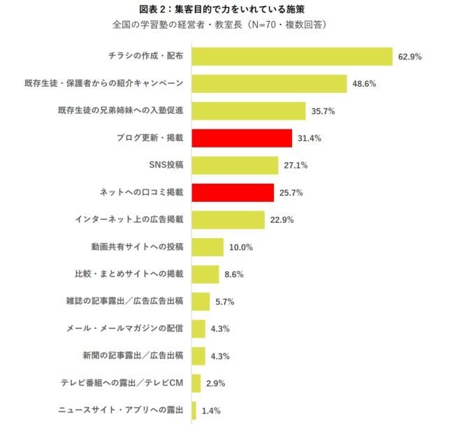・学習塾は集客施策を見直し、より多くの保護者に自塾の情報を訴求するために、「ネット上への口コミ掲載」に注力するべきかもしれない。