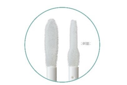 塗りたい箇所にしっかりとアプローチできるロングチップを採用。肌あたりはふわふわした質感の長毛フロッキーで、1度のピックでたっぷり塗布できます。