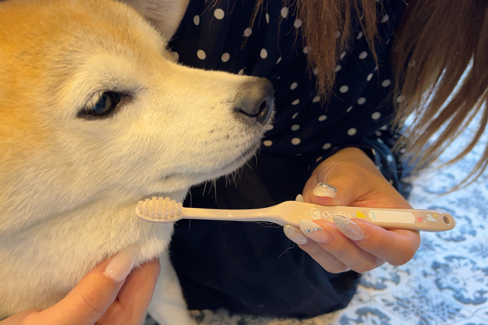 そこで、ペットのお口に優しい歯ブラシをつくりたいと考え、年間1,000頭以上の犬の歯磨きを行なっている歯科衛生士と、 ペット用歯ブラシ開発に15年間従事してきた当社代表と2021年夏、共同開発した歯ブラシが「オーラバイオブラシ」です。ブランドを立ち上げて以降、全7種類のラインナップを展開し、多くの飼い主様に支持されています。