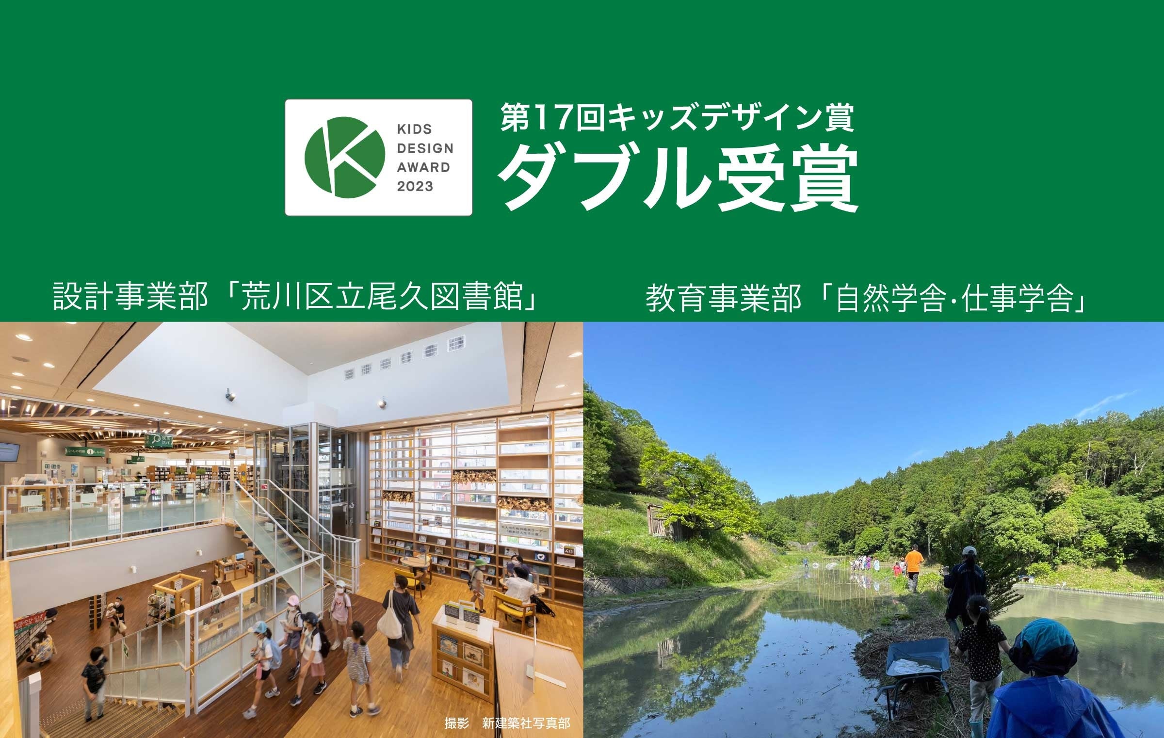 株式会社 類設計室の設計事業部「荒川区立尾久図書館」と教育事業部「自然学舎・仕事学舎」が「第17回キッズデザイン賞」を受賞