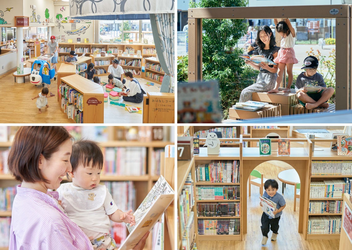 子育てひろばやわくわくひろば等、各世代の居場所となるキューブ状の「ひろば」が組み合わさる建物外観やテラスに加え、建物中央「本のみち」には、木漏れ陽天井や岩石ベンチ、ブックキューブ等、感性を育む要素を数多く配置して公園と繋がる散歩道としました。公園内には保育園や遊具のある「こども広場」も併設され、これらと連携し公園と一体となって地域の新しい子育てを行う場としてデザインしています。