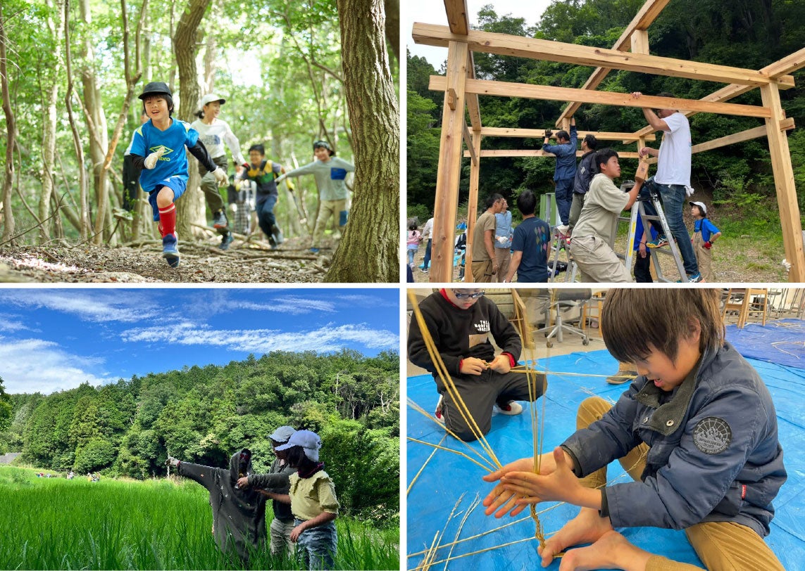 小学生から中学生が、毎週土日に参加し、山林の中では自然探索やサバイバル活動、畑では、稲作・畑作から販売まで行います。一過性の体験ではなく、継続課題として本物の実践を大事にしています。チームで取り組み、異年齢での教え合いが生まれる体制を導入しています。