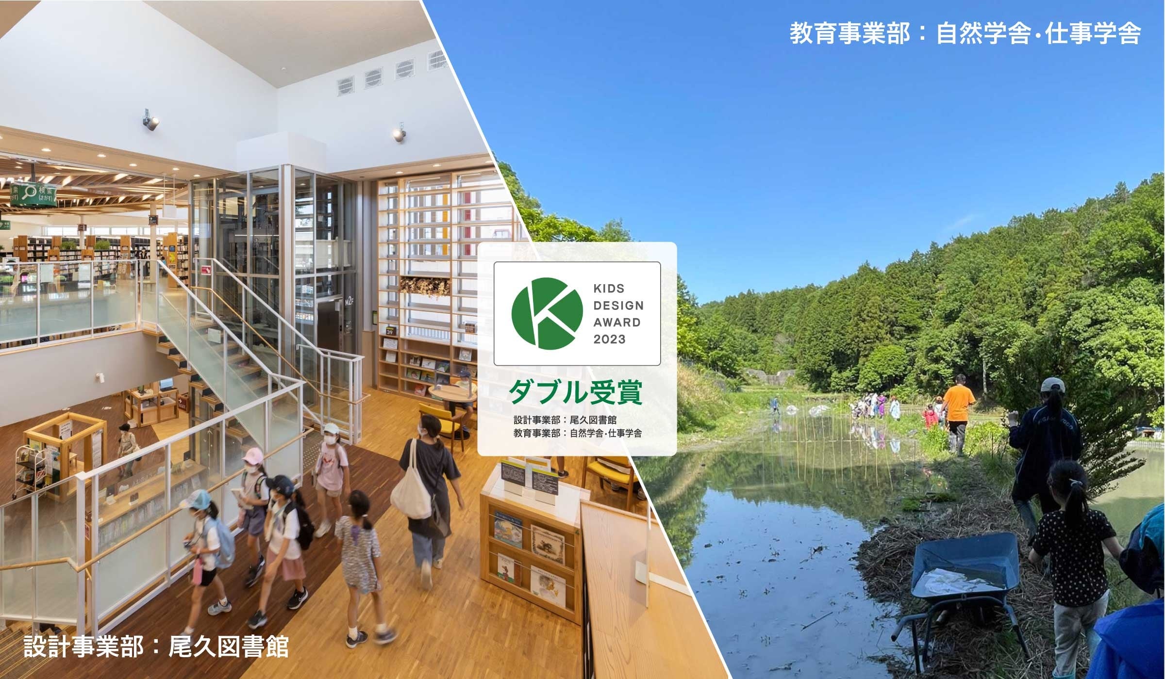 今回、株式会社類設計室が受賞したのは、公園と一体となった散歩型図書館・世代循環をコンセプトに建物を設計した東京都「荒川区立尾久図書館」と、教育事業部の一過性でない本物の実践型教育プログラム「自然学舎・仕事学舎」の2作品です。当社では、建築設計・教育・農業分野の事業を行っています。そして複数の事業が共創・協働し、子どもたちの創造性を育み、主体的に学べる場づくりに挑戦しています。今回は、「建築・空間」と、「コミュニケーション」という異なる分野でのダブル受賞となりました。