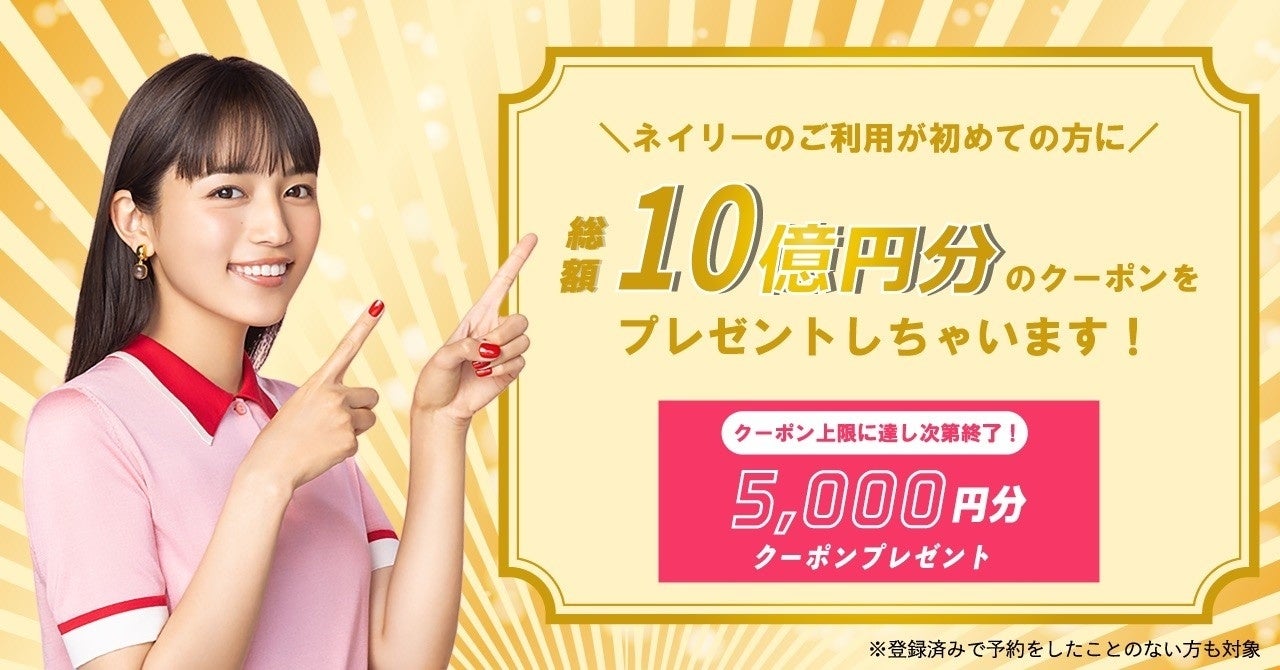 ・概要:先着200,000名様にNaileでご利用頂ける5,000円分のクーポン(総額10億円分)をプレゼント