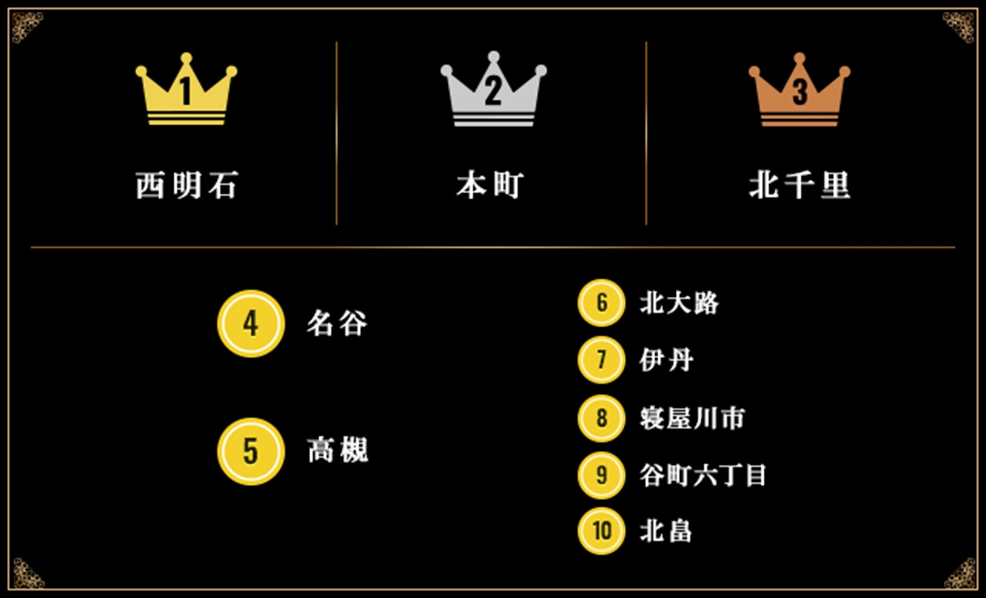 1位「西明石」、2位「本町」、3位「北千里」に決定