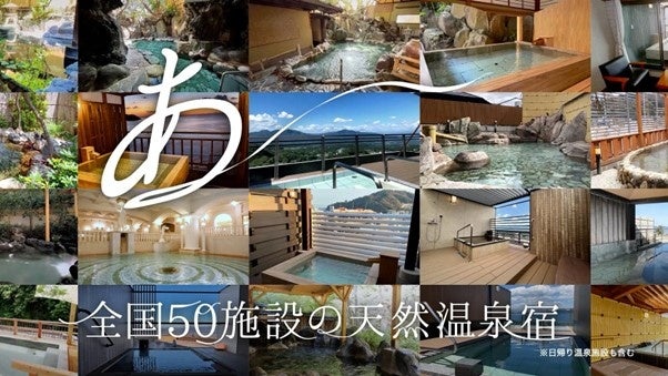 「いろんな「あ~」が楽しめる全国50の天然温泉宿」のナレーションとともにたくさんの温泉画像が映し出される。