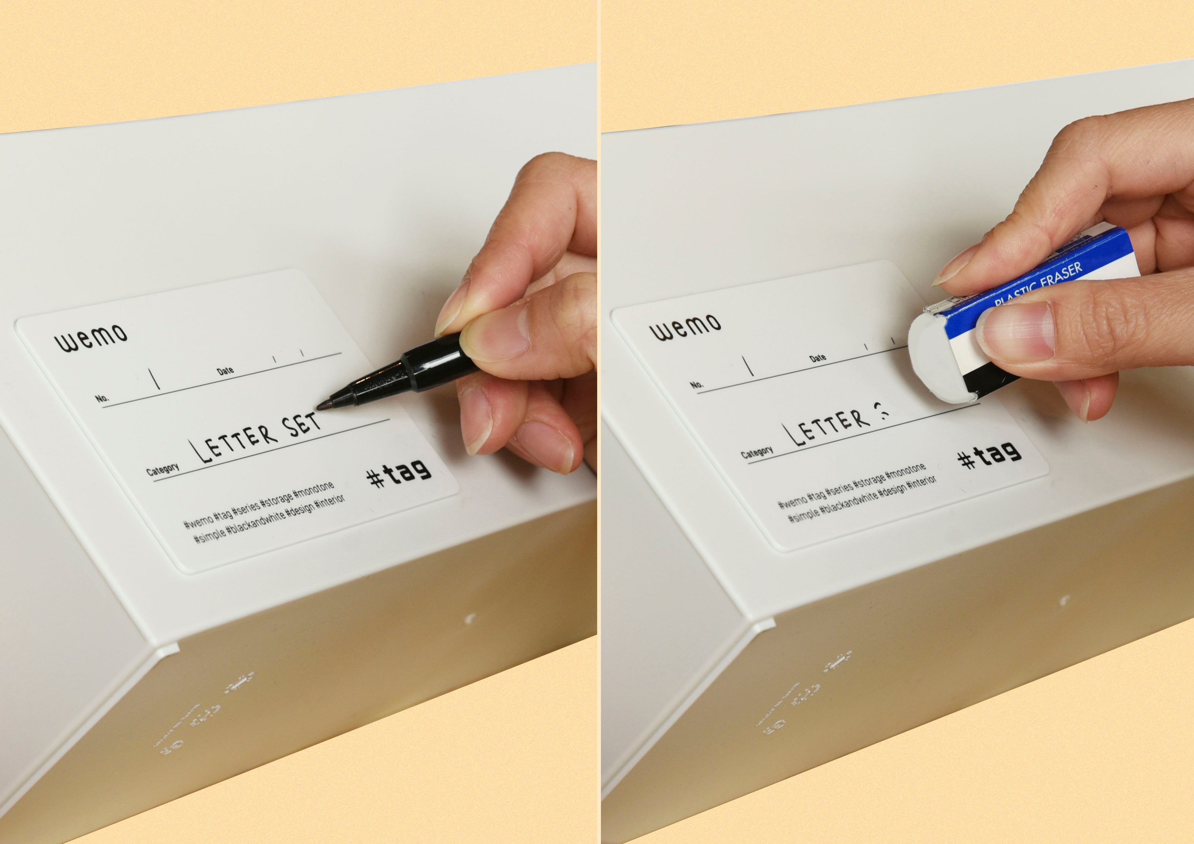2021年3月には、油性マーカーで書いて消しゴムで消せる、ポリカーボネート製の「wemo#tag」シリーズを発売しました。