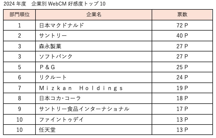 3年連続トップの企業が続くなか新たな顔ぶれも登場 新部門 WebCM好感度も発表 ― 2024年度 企業別CM好感度ランキング ―