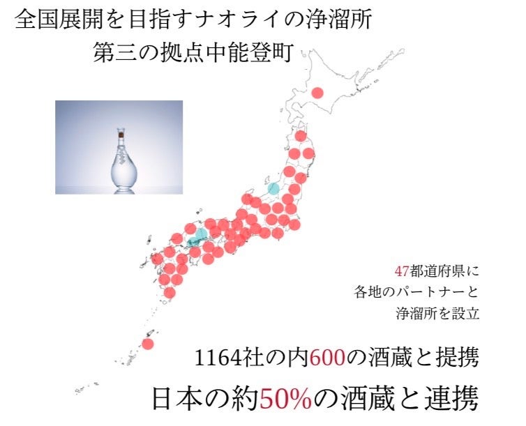 独自の特許製法による第三の和酒※「浄酎-JOCHU」の生産、販売を行うナオライ株式会社(本社:広島県呉市、代表取締役:三宅紘一郎、以下:ナオライ)は、のとBeyond復興ファンドの投資を受け、2024年10月8日にNOTO Naorai株式会社を設立、2025年2月能登半島の中能登町に新たに『能登浄溜所』を開設いたします。広島県の神石高原町の神石高原浄溜所に続き、第二蔵目となる『能登浄溜所』は石川県中能登町の日本酒醸造元、株式会社鳥屋酒造に併設する形で設立し、当月2月中の生産開始を予定しています。