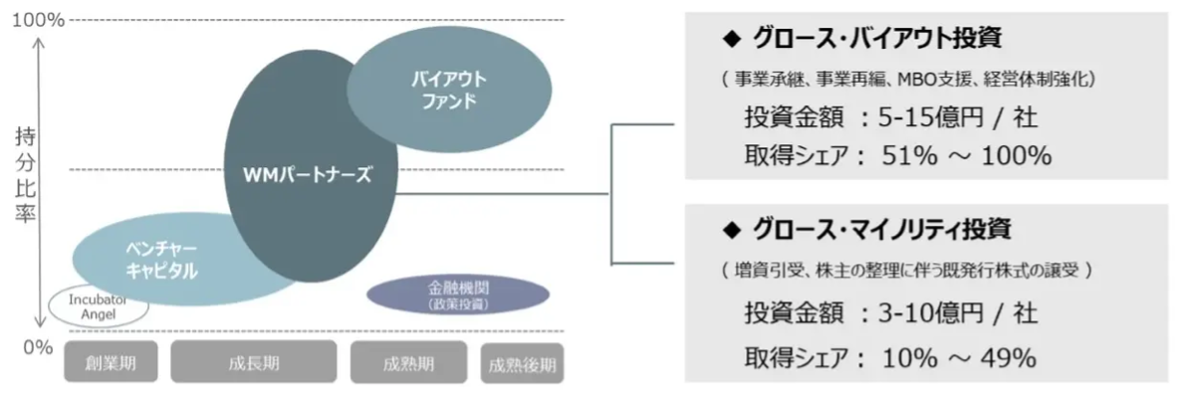 WMパートナーズは、2013年に設立された独立系投資会社であり、プライベート・エクイティ業界において10年以上の投資経験と様々な事業バックグラウンドを持つ投資プロフェッショナルがチームを構成しています。