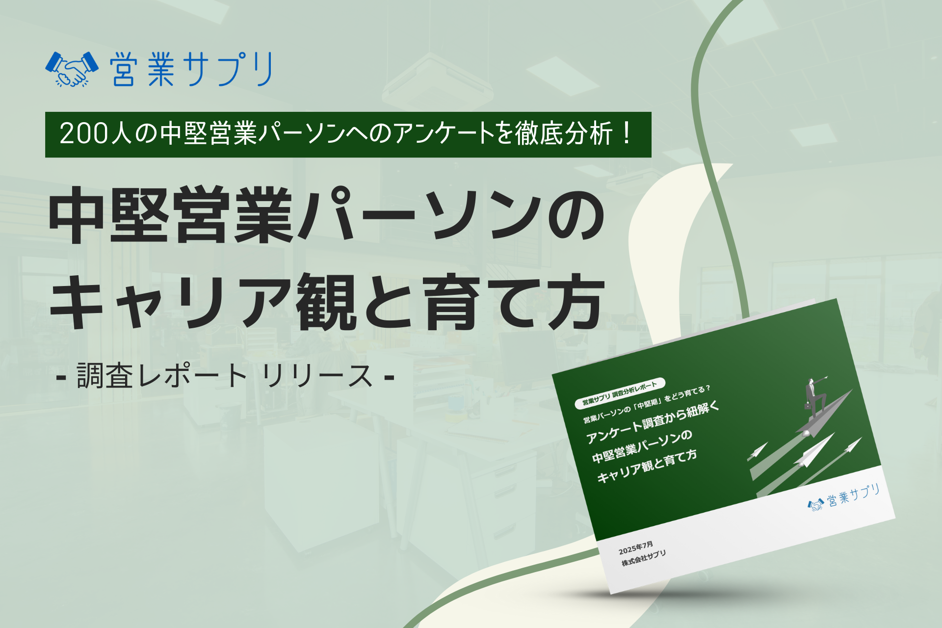 法人向け営業研修「営業サプリ」を展開する株式会社サプリ(本社:東京都千代田区、代表取締役:酒井雅弘)は、営業組織における中堅層のキャリア観や育成課題を明らかにすることを目的に、法人営業パーソン205名を対象とした調査を実施しました。