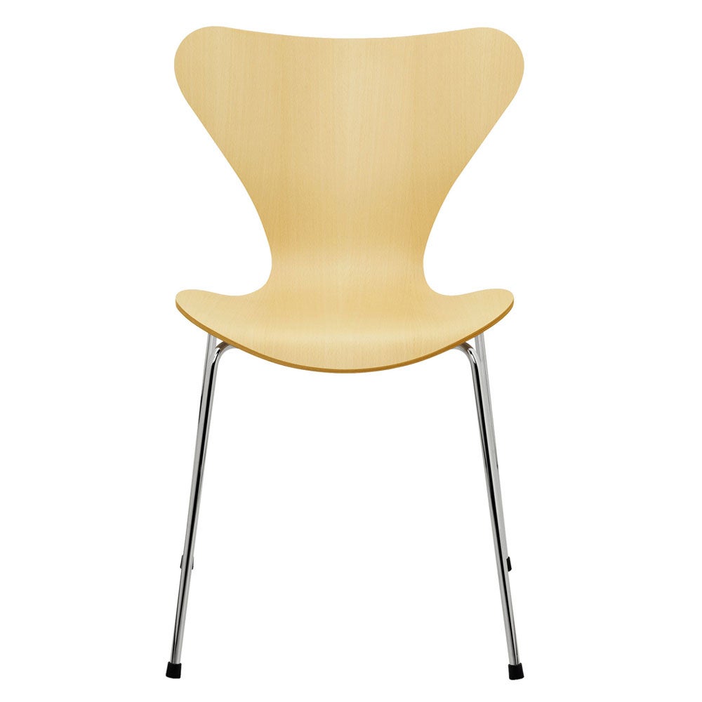 アリンコチェアから3年。アルネ・ヤコブセンは、アリンコチェアに改良を加え進化させ、デンマーク家具の歴史上最もアイコニックな製品のひとつである、セブンチェアをデザインしました。アリンコチェアよりも有機的なシルエットでありこのフォルムは、タイムレス且つ多用途で飾ることなく個性的な魅力を感じます。9層のベニヤで構成される成形合板のシェルは、スレンダーなフォルムと強度・柔軟性、耐久性を備え、今も尚フリッツ・ハンセン社を代表するベストセラーであり続けています。