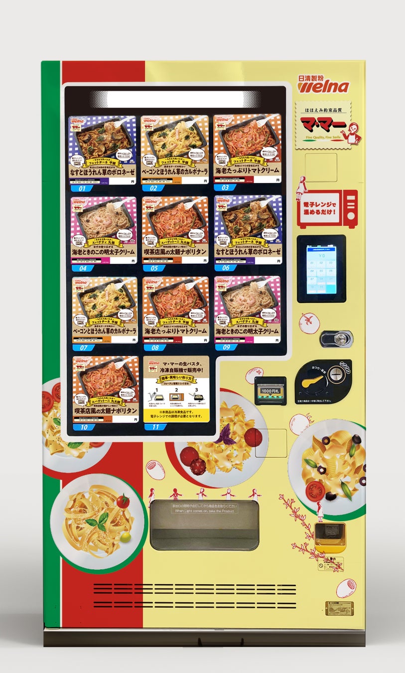 内容 | 【提供条件】 ①SOBOを通じて冷凍自販機を購入もしくはリースしていただき、かつその冷凍自販機を「マ・マー デザイン(上記写真がイメージ)」にしていただいた事業者(冷凍自販機ラッピング費用は当社負担) ②当社製品のみを冷凍自販機で販売いただけること 【提供内容】 ・冷凍自販機導入や販売に際して必要な各種ツールや製品を無償で提供 ①キャッシュレス決済用端末、②加熱用電子レンジ、 ③製品在庫保管用冷凍庫、④冷凍自販機用メニューパネル、 ⑤初回納品分のパスタ150食分 |