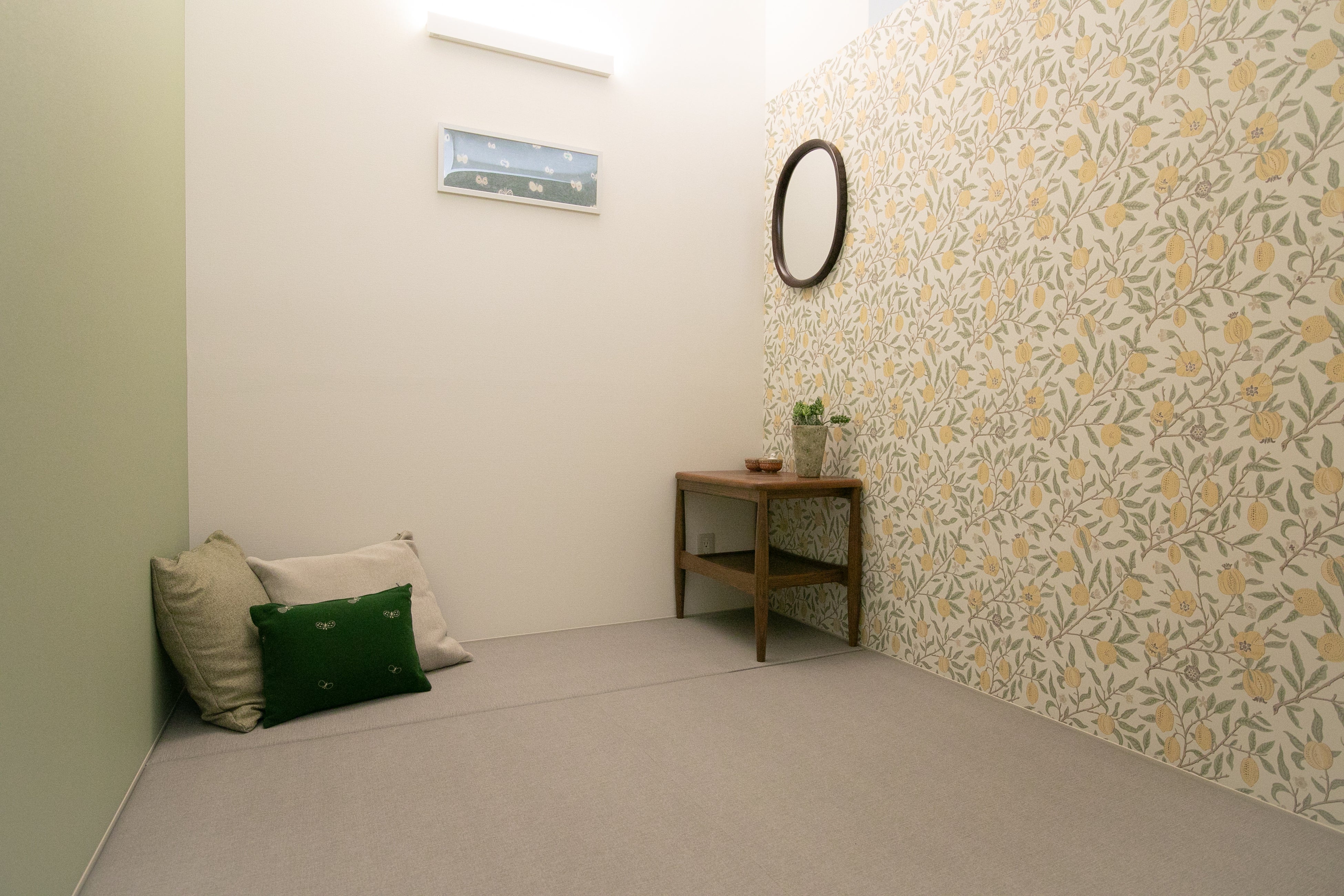 ファミリールームは「ホッとできる場所」を目指しています。看護師さん達のお声も聞いて、部屋の色味や素材、椅子選びまで、ご家族のためにこだわりました。最もこだわった部分は、付き添い家族へのアンケートで多かった「脚を投げ出して寝ころびたい」というお声から生まれた「寝ころび部屋」です。