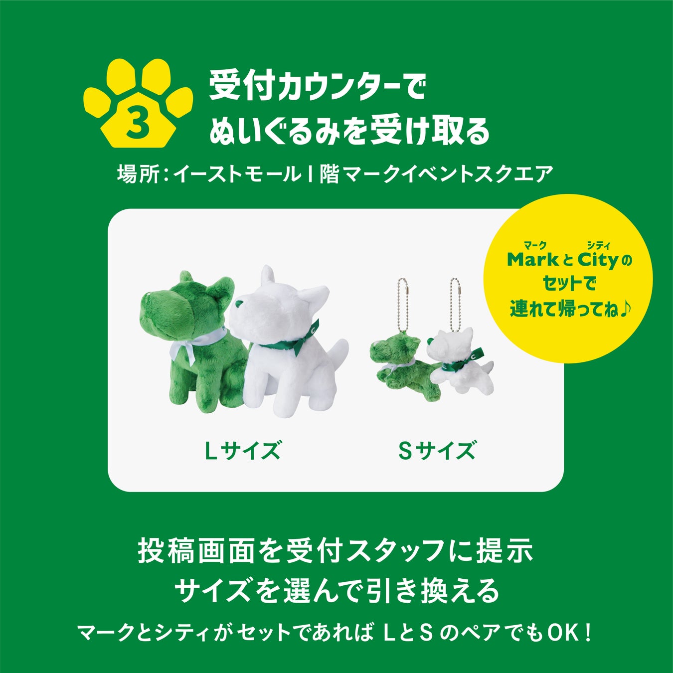 ぬいぐるみはMarkとCityのセットで進呈。サイズはLとSの2種類。