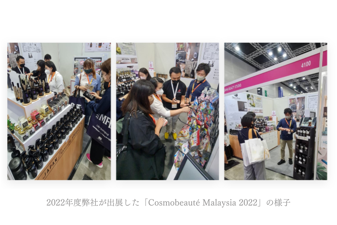また、今回はマレーシアの展示会に出展する予定です。Statistaによると、マレーシアのビューティー&パーソナルケア市場の売上は、2022年にUS$2.68 BNに達し、市場は毎年4.07%の成⻑が見込まれています。ビューティー&パーソナルケア市場では、総売上高の88%がオフライン販売によって生み出されるため、展示会は理想的な出会いの場となります。