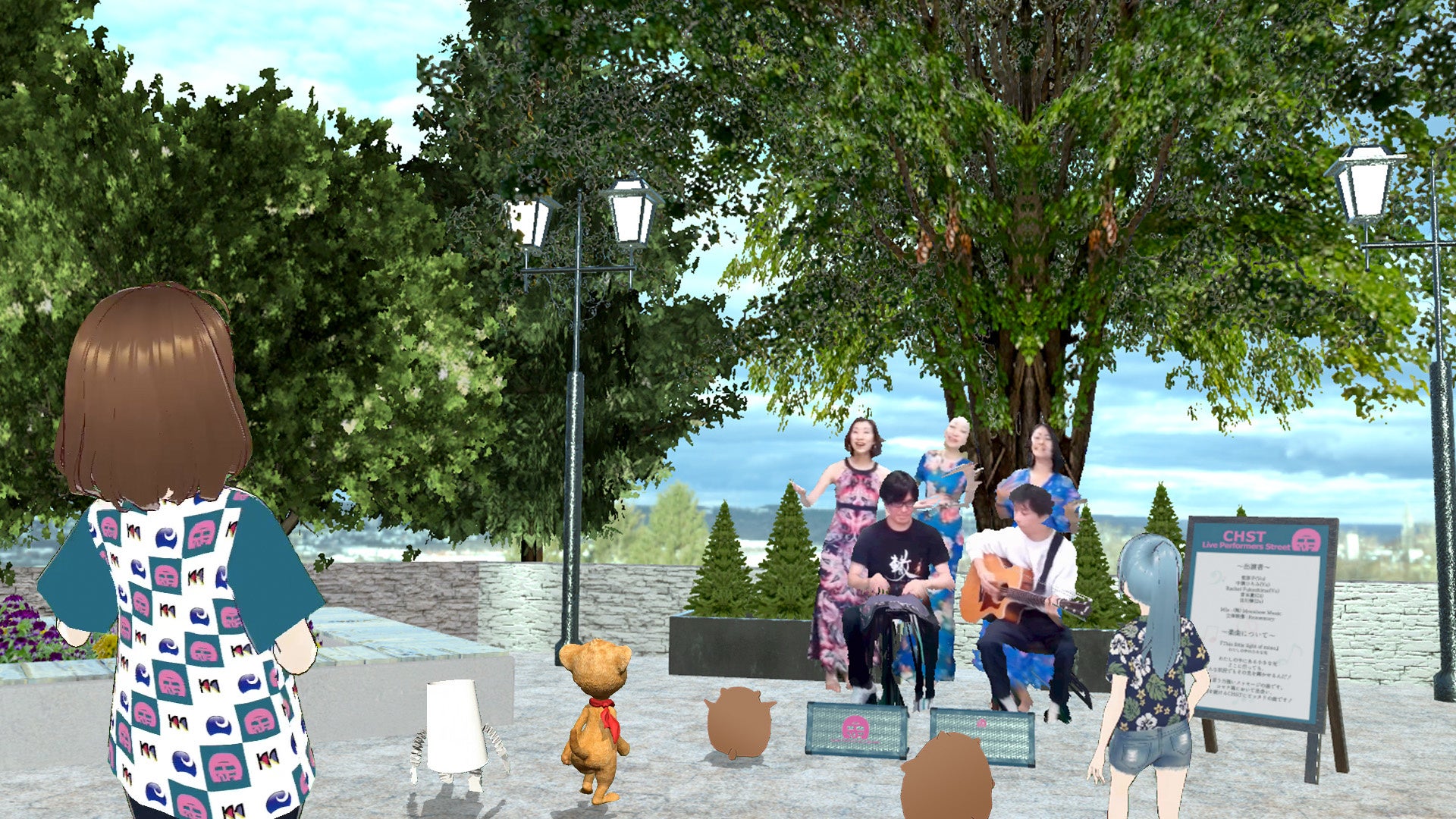 ワールドデザインはCHSTメンバーでもあるCGクリエイターのイカめしの作品。今後もこのストリートでCHSTに所属する様々なクリエイターやアーティストのパフォーマンス・作品を公開予定です。