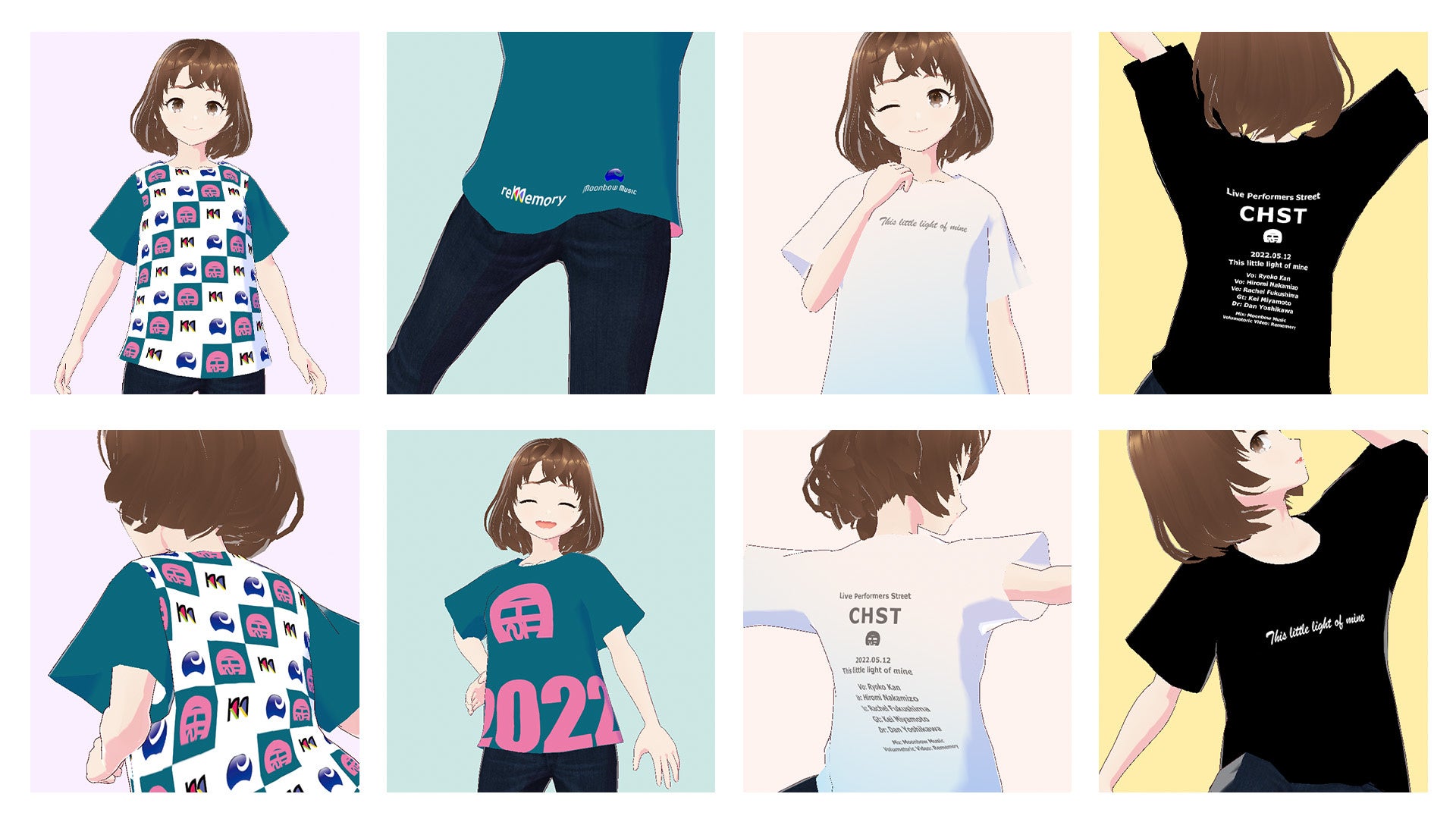 活動に共感、支援いただける方にBooth[※3]にてデジタルグッズを公開しています。バーチャルストリートライブをより楽しんでいただくためのTシャツデータ等も取り揃えています。売上はプラットフォーム手数料を除き、CHSTに還元されます。