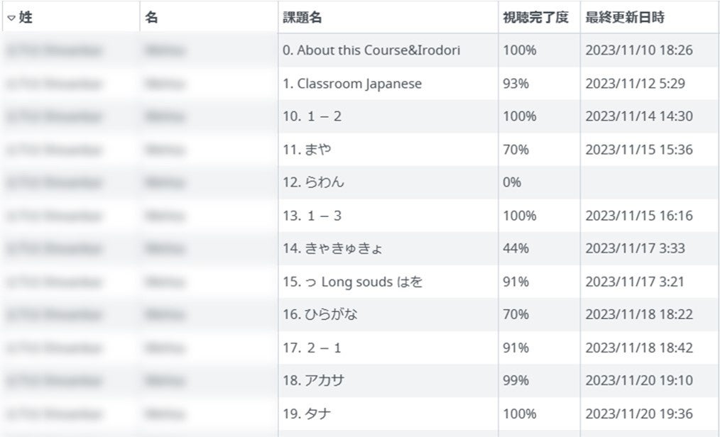 ▼管理者向け画面(学習進捗やテスト成績等をリアルタイムで確認可能)