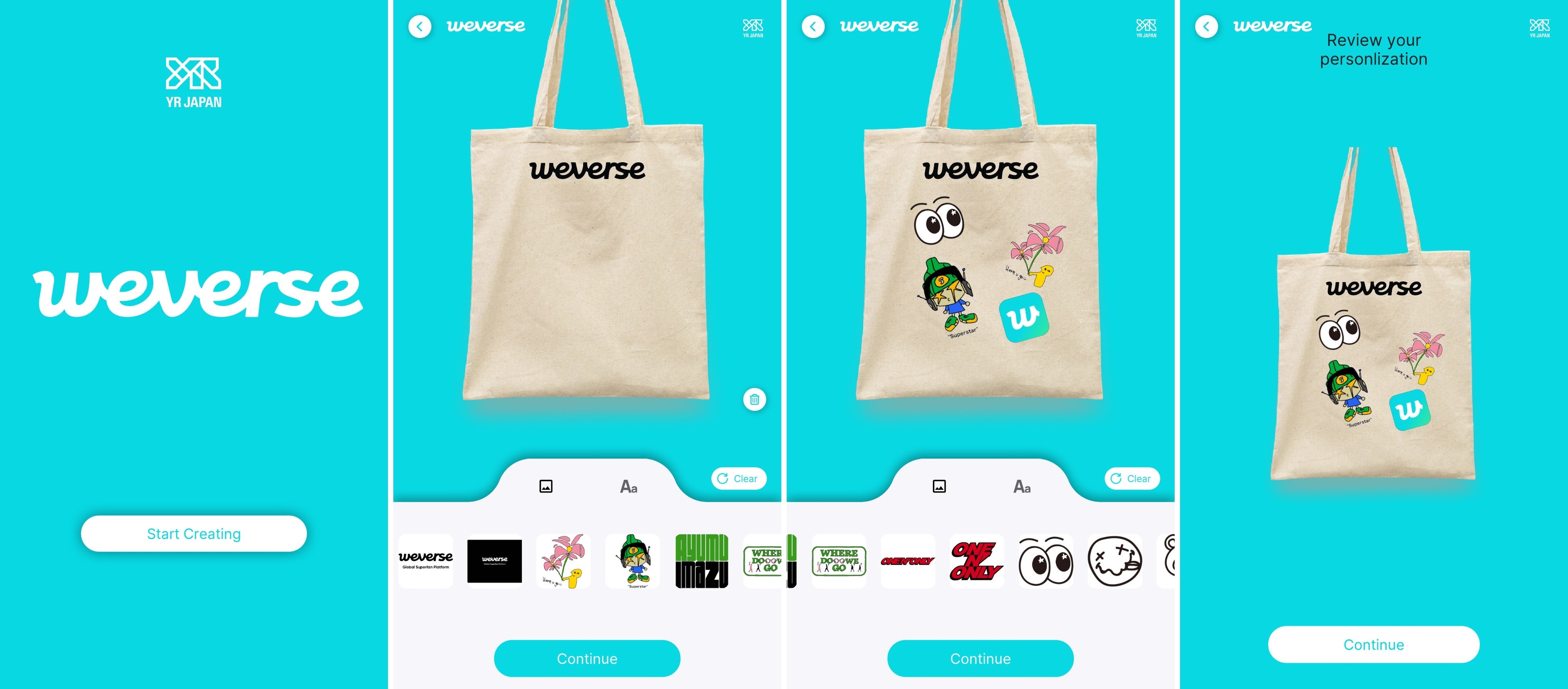 *Weverse by Fans 体験コーナーはYR JAPANのカスタマイズシステムを使用しています。(実際のweverse by Fansとは異なるシステムです。)