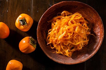 陽と人が運営するブランド『明日 わたしは柿の木にのぼる』の製品の原料となる平種無柿や蜂屋柿は、福島県中通り北部に位置する国見町で栽培されている。福島の名産でもあるあんぽ柿の⽣産過程で廃棄されていた資源(柿の⽪)を製品の主原料に使⽤。そして⽣き⽣きと輝く⼥性をエンパワメントする製品をつくることで、循環する社会の実現へ向けた活動を⽌めず、社会へ還元をしていく。