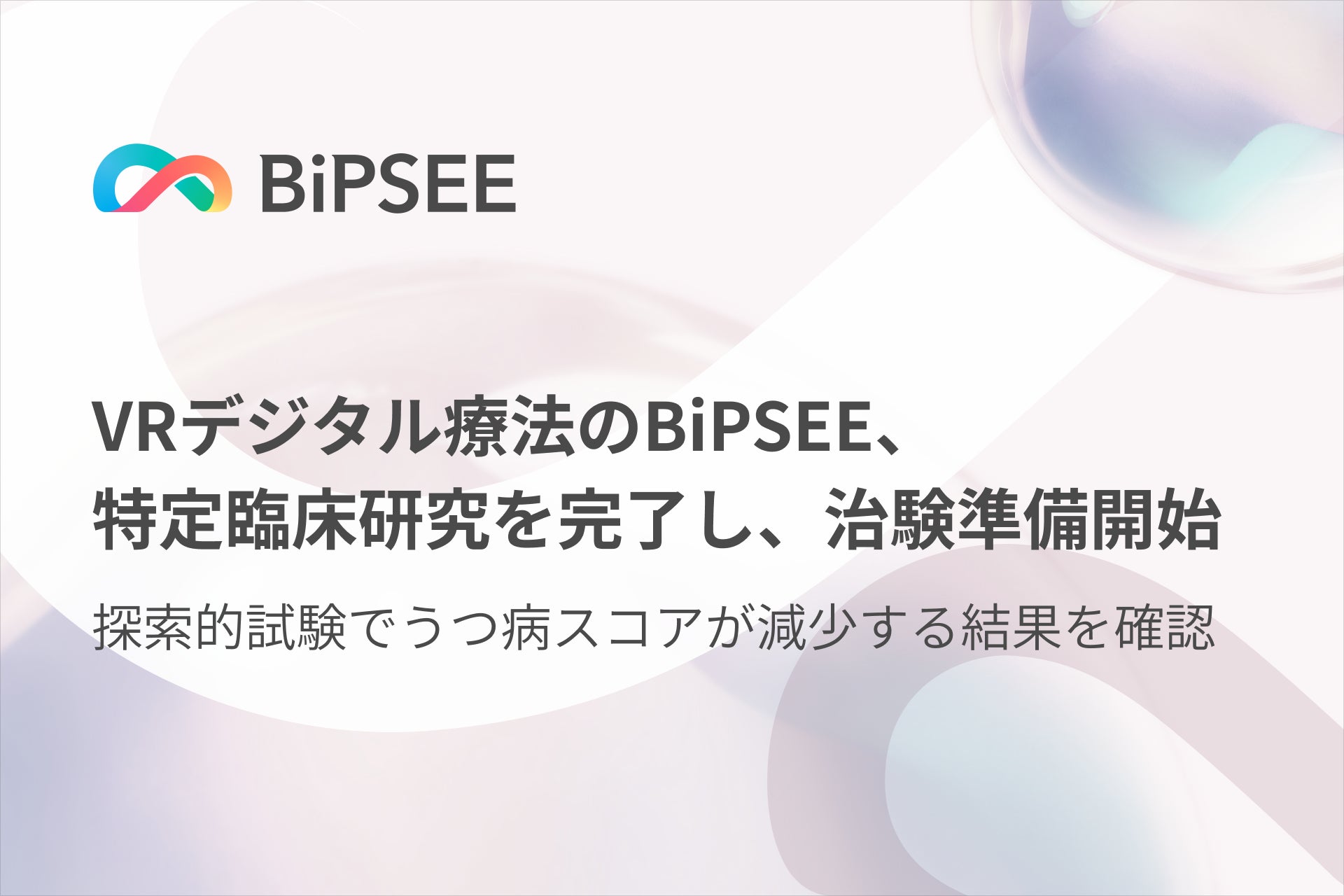 株式会社BiPSEE(本社:東京都渋谷区、代表取締役 CEO 松村 雅代)は、高知大学医学部附属病院との共同研究として実施していた、うつ病に対するVRデジタル療法(VRx)に関する特定臨床研究(ランダム化比較試験)にて、対象患者のうつ病スコアが大きく減少したことを確認しました。今後、治験に向けた準備を進めて参ります。