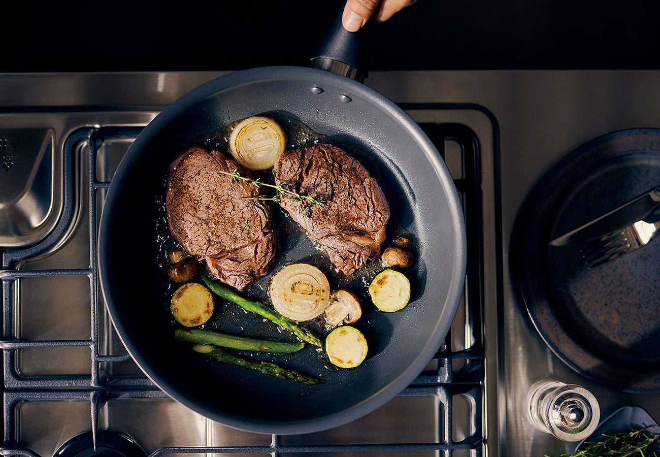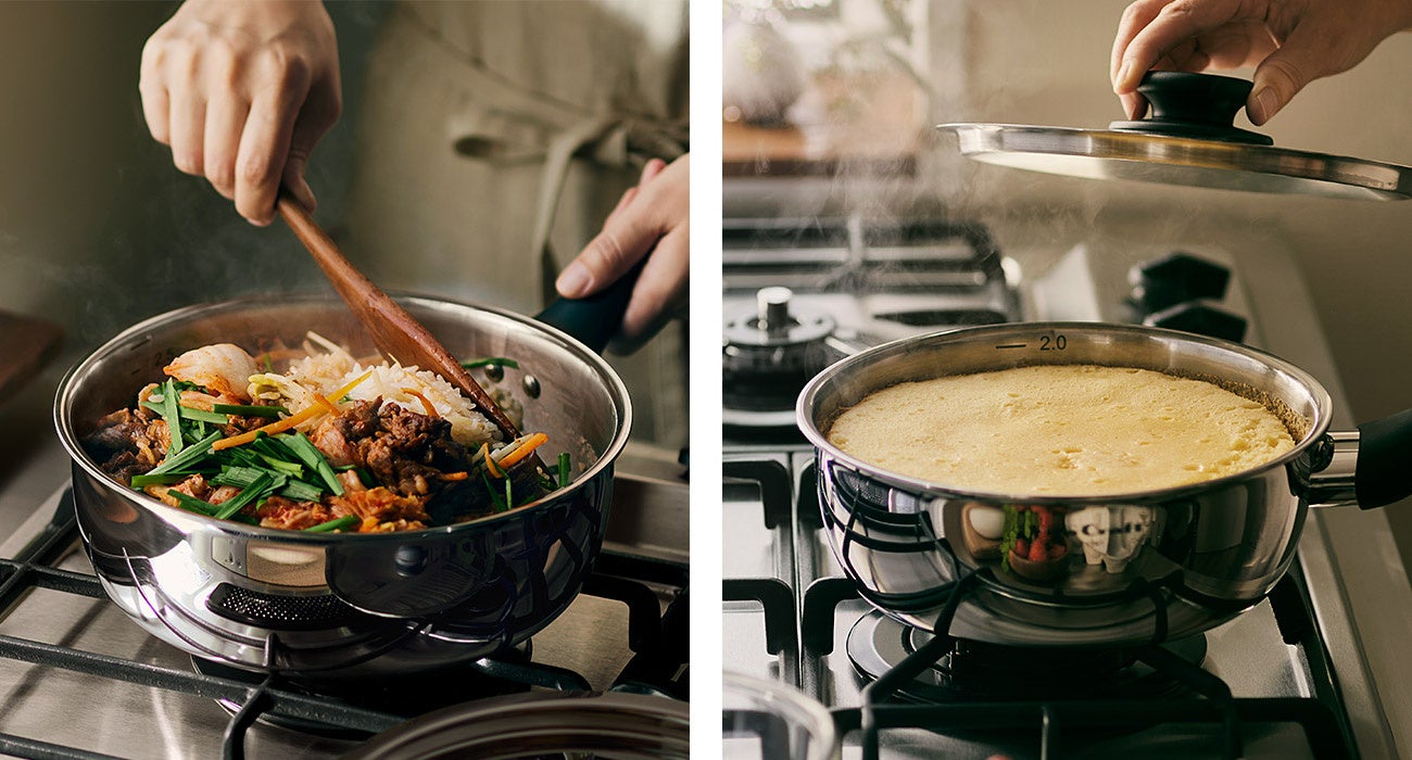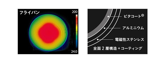 こびりつきにくく耐久性が高い「ビタコート®」を施したフライパンと、無水調理など多彩な使い方ができる全面ステンレスのマルチパンをラインナップ