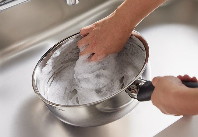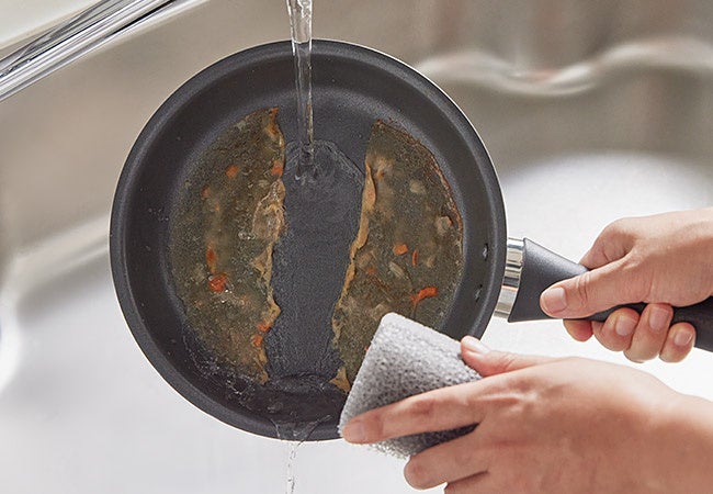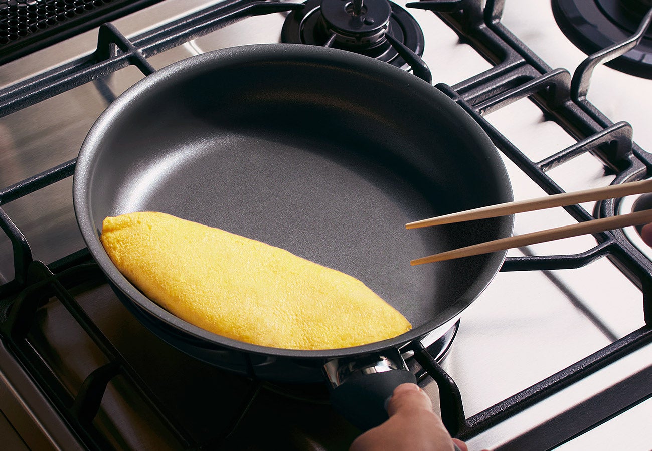 フライパン、ウォックパン、エッグパンはビタコート®によってこびりつきにくいため、するんとすっきり洗い流せます。