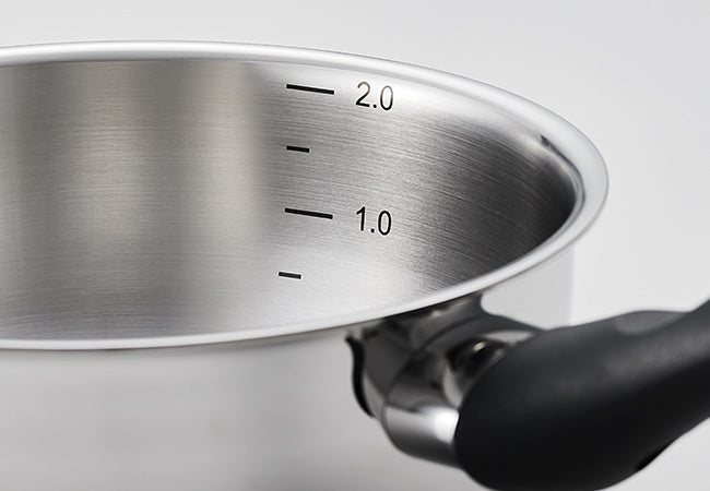 マルチパンの本体内側には目盛りがついているので、調理もスムーズです。