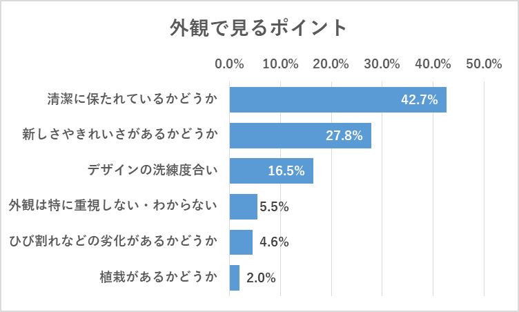 外観で見るポイント1位は「清潔に保たれているかどうか」(42.7%)でした。