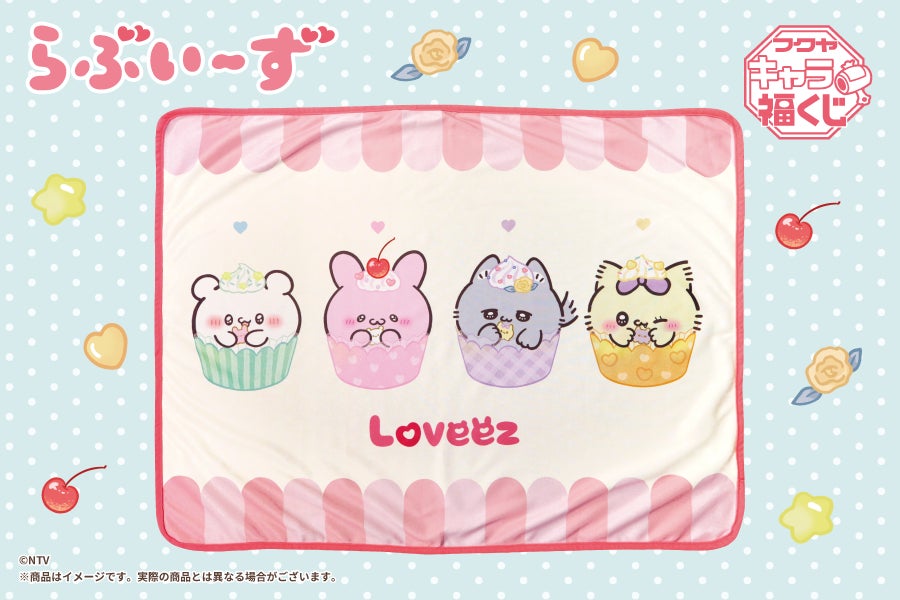 くじは6等級に加え、最後のくじを引いたお客様が必ずもらえるラスト福賞で構成されています。カップケーキになったすもっぴ・ぴょんちー・うるる・にゃぽの新規描き下ろしイラスト等を使用した限定デザインです。店舗から無くなり次第終了となります。