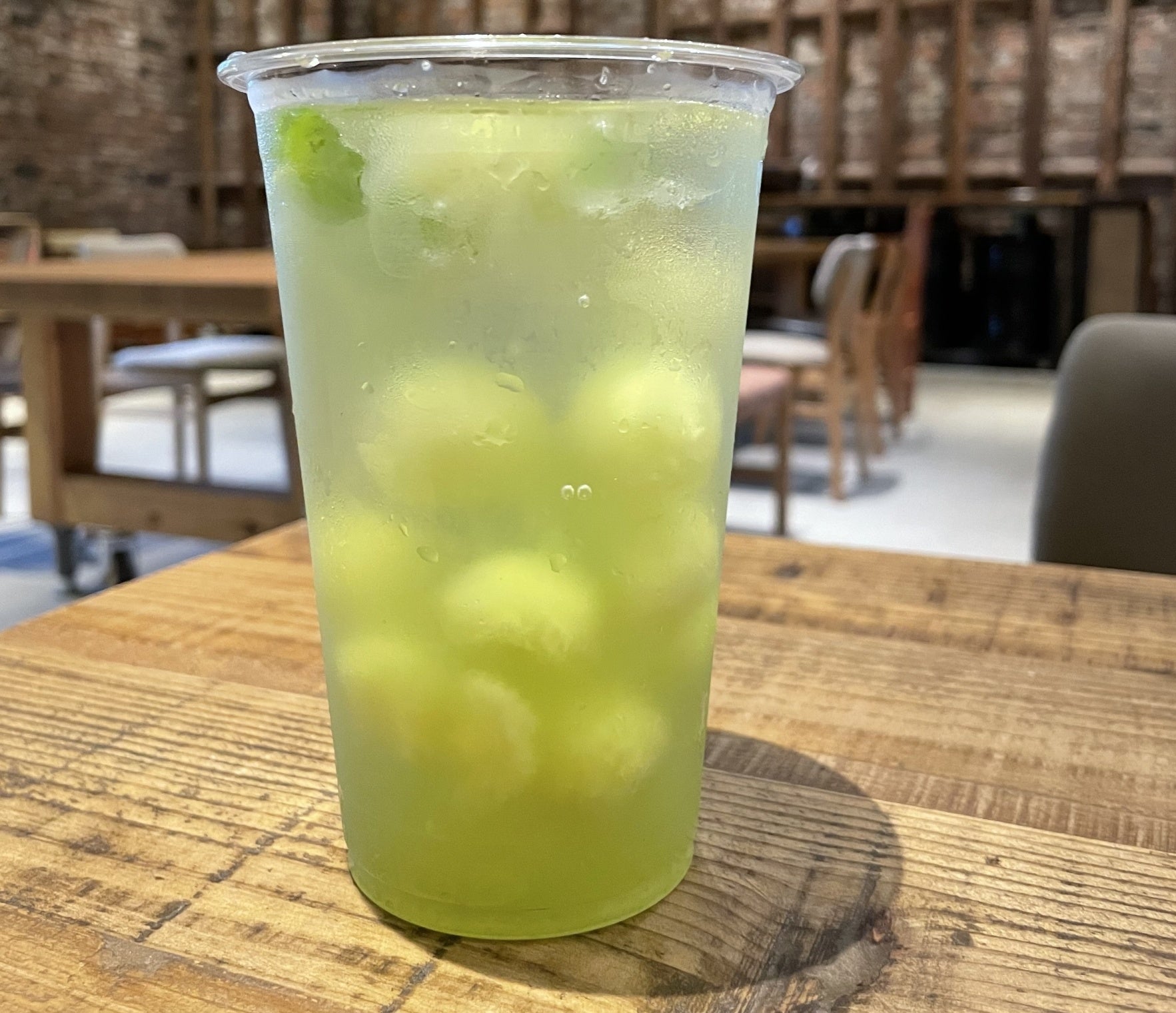 メロンの味、香り、食感をお楽しみいただける逸品。みずみずしいメロンジュレにメロンシロップでマリネしたメロンボール。QUEENらしく花穂シソの花を飾り、上品な香りも楽しんでいただけます。