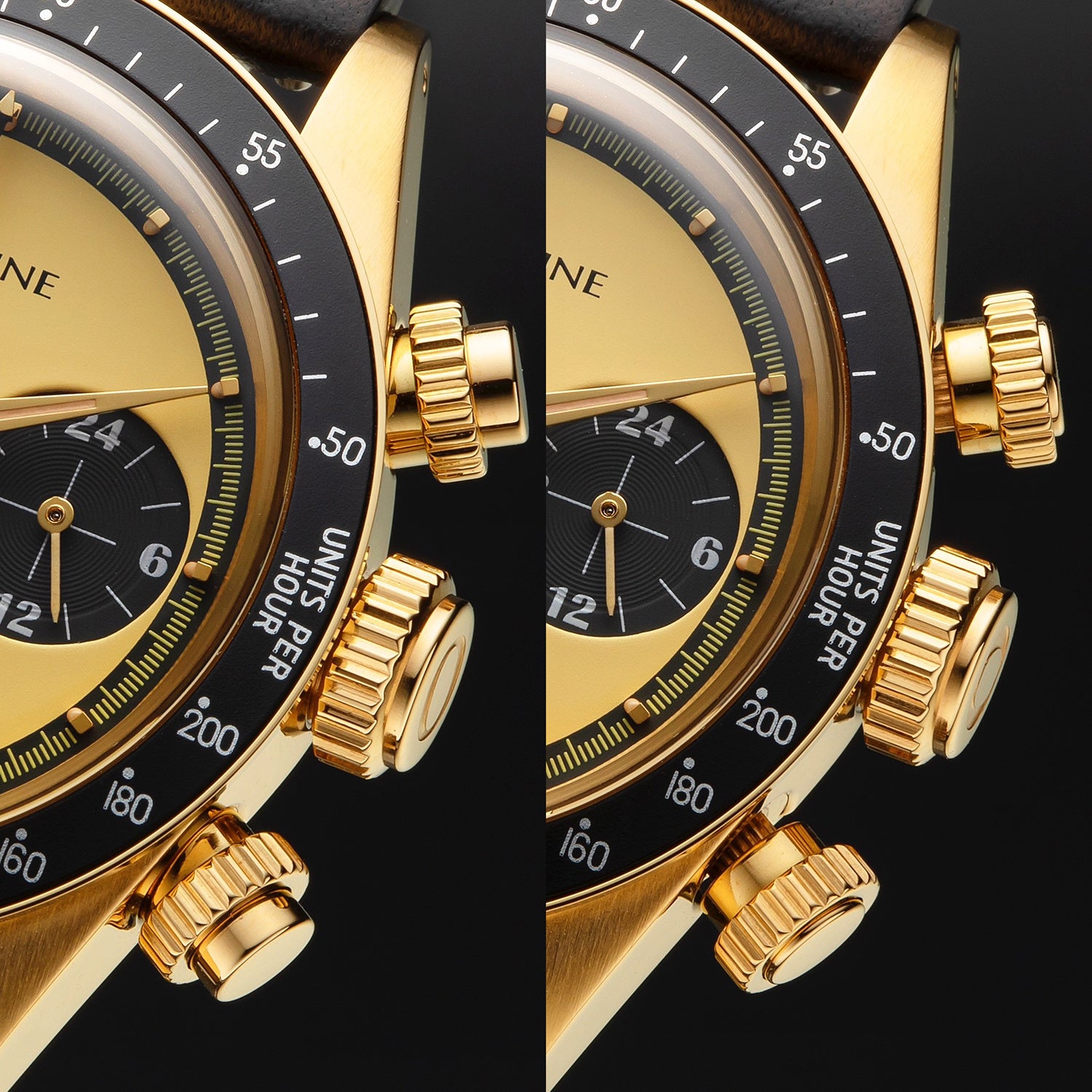 デザインは有名な海外オークションでもこれまでに3本ほどしかその存在が確認されていないと言われる、イエローゴールドのケースにレモンイエローの文字盤をもつ伝説の手巻きクロノグラフ時計から着想を得て製作。