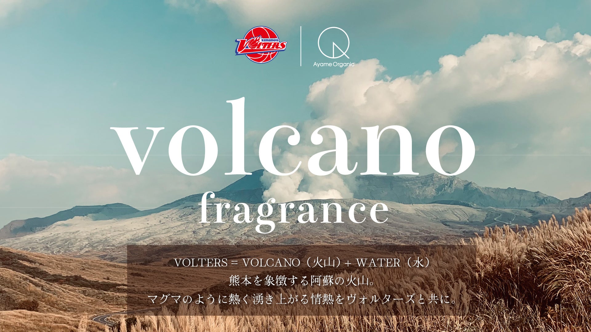 弊社は熊本ヴォルターズのオフィシャルフレグランスサプライヤーとして、チーム、そしてVoltersRedの皆様が一丸となって勝利を掴むことを、香りを通してサポート致します。 この香りが会場に熱気を沸き起こし、チームに力を与えることをイメージして 「VOLCANO」「WATER」の創香を行いました。 オリジナルフレグランス「VOLCANO」「WATER」がB1昇格への後押しとなることを、 心より願っております。