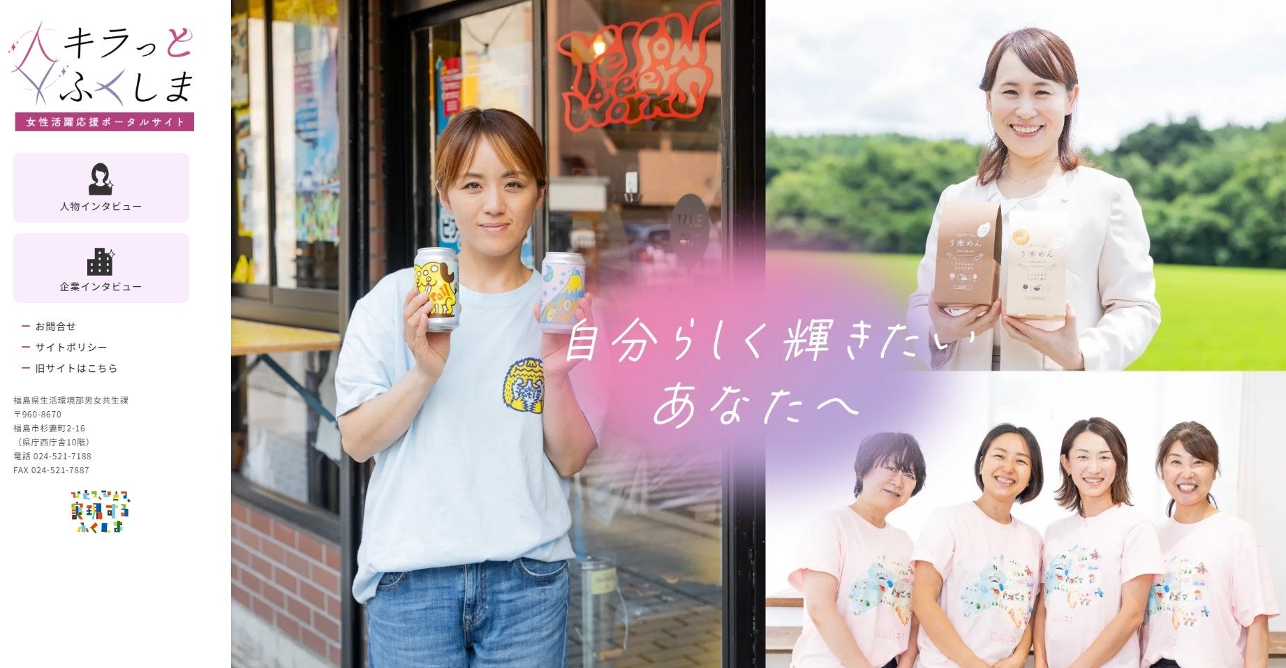 男女の枠にとらわれることなく活躍している人を紹介する『キラっとふくしま』は、福島県生活環境部男女共生課によるポータルサイト。 https://kiratto-f.com/