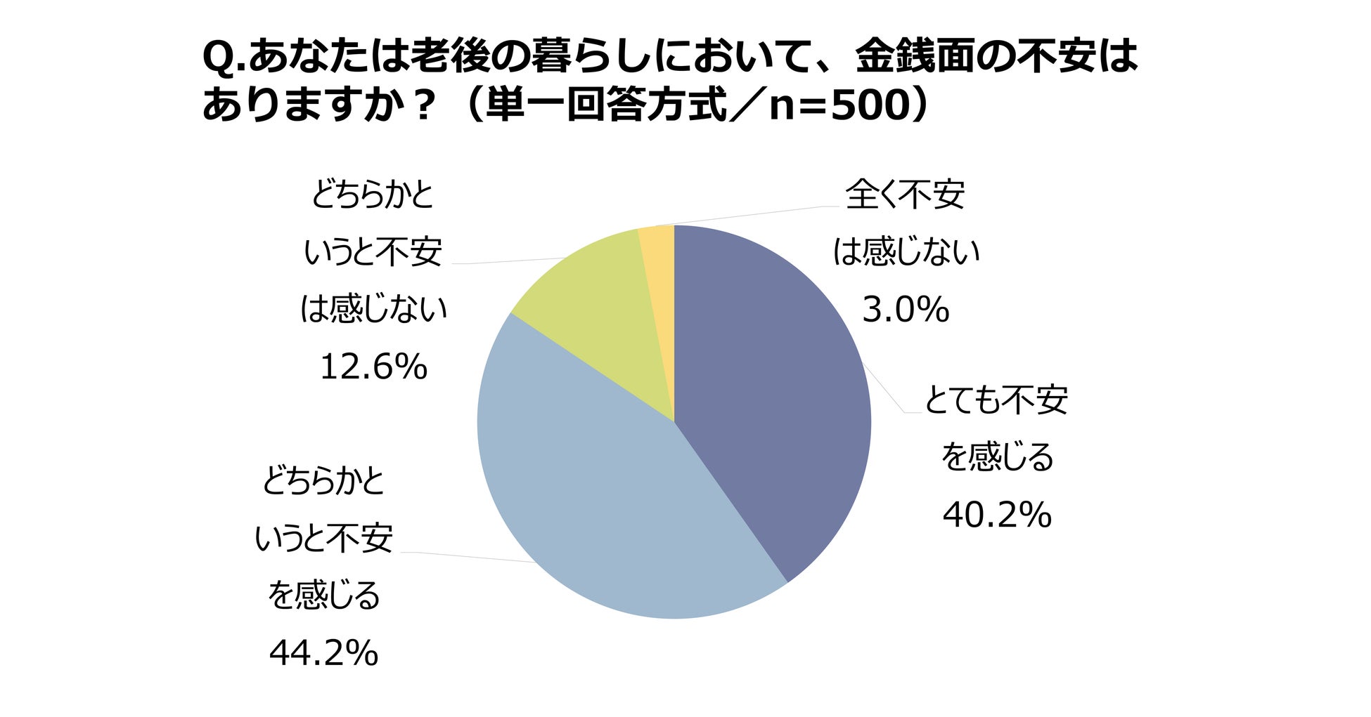 老後の暮らしにおいて金銭面の不安はあるか聞いたところ、「とても不安を感じる」と40.2%が回答し、「どちらかというと不安を感じる」と回答した44.2%と合わせると、84.4%(2019年実施時は84.2%)もの方が老後の金銭不安を感じていることがわかりました。また定年退職はないと回答した方を除外した463名の中で、定年後に何かしらの方法で働きたいと回答した319名に、自身が定年退職後も働きたいと思う理由を聞いてみたところ、お金のためという回答が81.8%と最も多く、次いで「社会や人との繋がりを持ちたいため」「肉体的健康のため」「やりがいのため」などがそれぞれ3割前後と続きました。