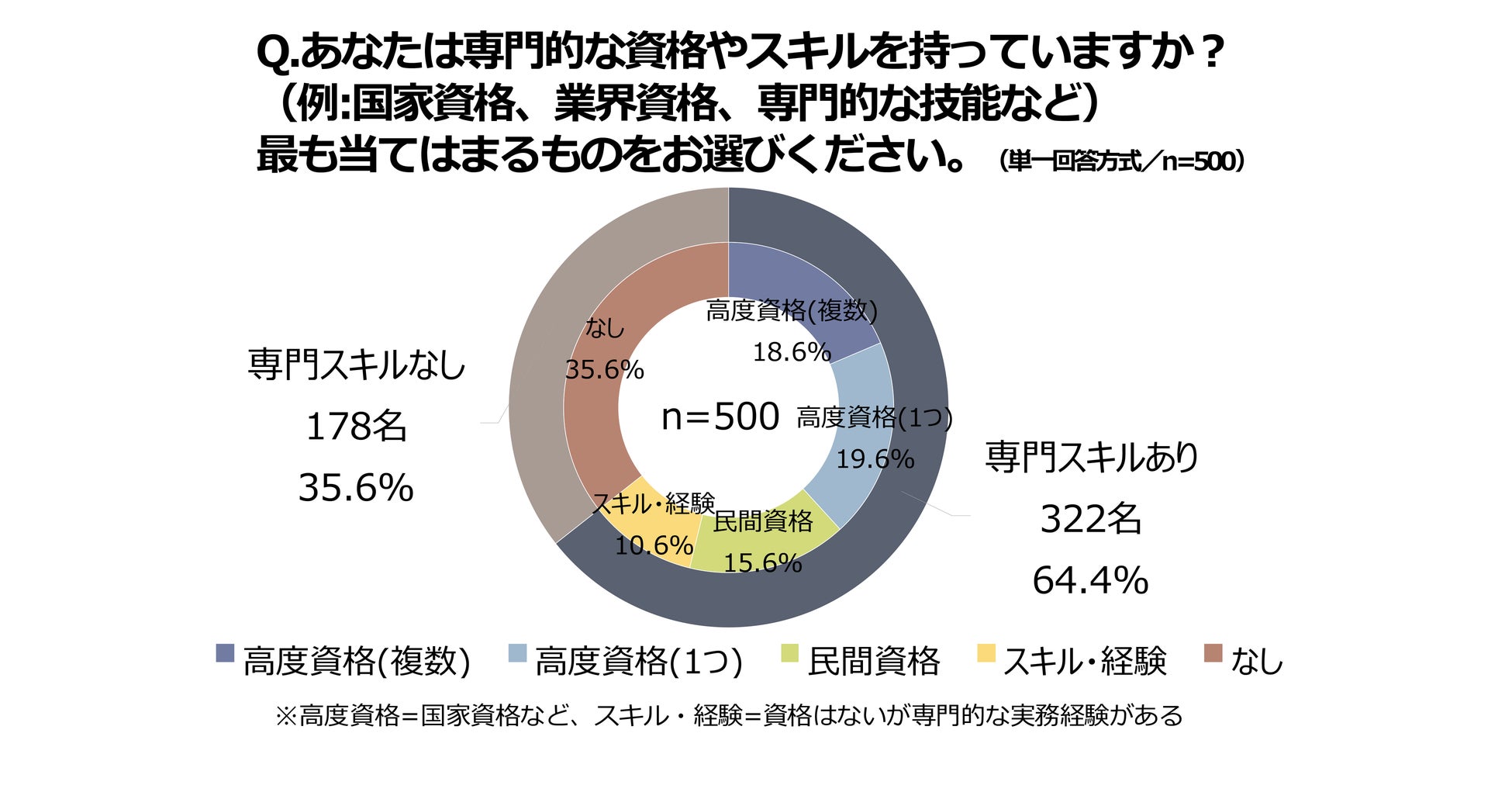 ※本調査の「専門的な資格やスキル」とは、国家資格・業界資格に加え、特定分野での実務経験や専門的な技術・知識を含む自己申告ベースの定義です。