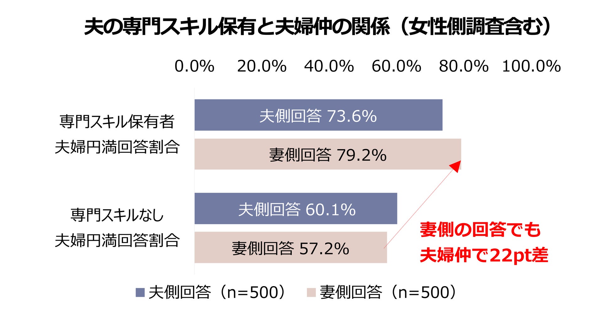 「専門的な資格やスキルを持つ夫」73.6%が夫婦仲が良いと回答(スキルなし60.1%/13.5ポイント差)