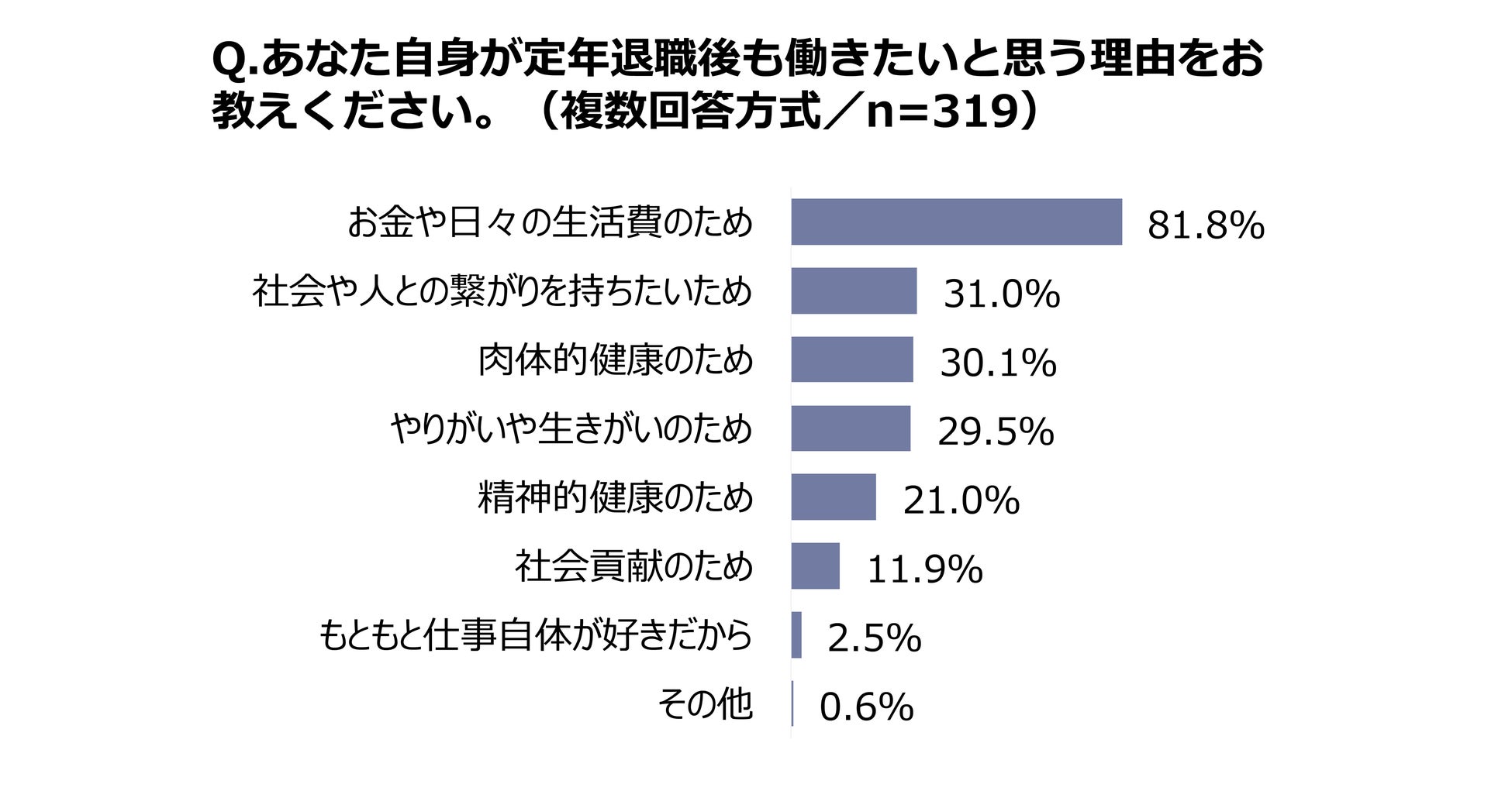 ■定年後も働きたい理由、「お金」81.8%に次いで「社会との繋がり」31.0%